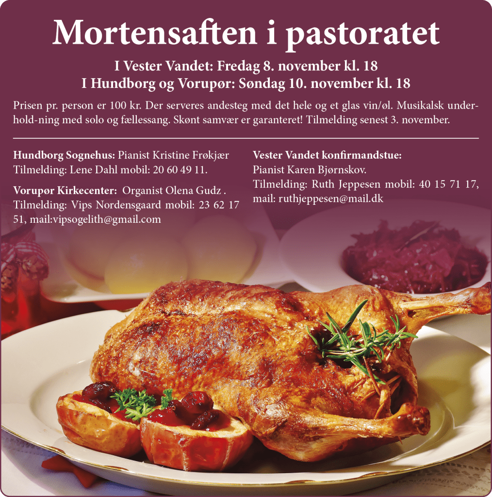 Tilmelding: Vips Nordensgaard mobil: 23 62 17